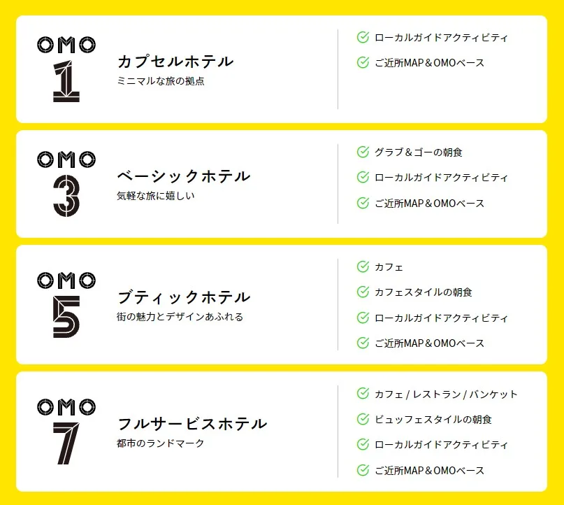 星のや・界・リゾナーレが宿泊自体を旅のメインとする施設である一方、OMOは周辺観光を楽しむためのホテルです。